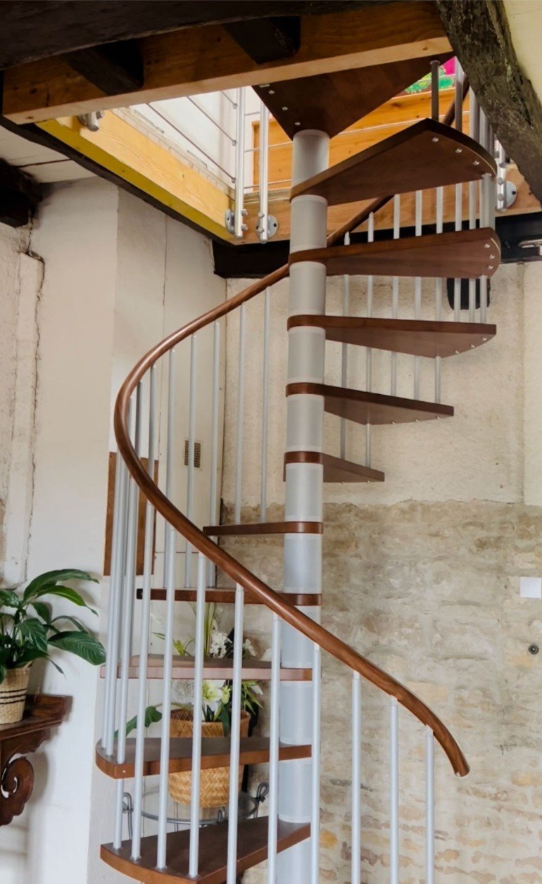 Nous sommes fiers de vous présenter ce magnifique escalier hélicoïdal installé chez notre cliente. Création de trémie, mise en place et installation par notre équipe.